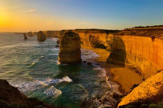 In der Sonne glänzen diese Felsformationen im tiefblauen Wasser. Einen ersten guten Eindruck der vom Meer geformten, natürlichen Kalksteinstatuen bekommt man am Gibson Step Lookout. Von hier aus führen steile Stufen bis zum Strand unterhalb der zerklüfteten Felsenküste. Bei gutem Wetter kann man am Strand bis zu den ersten Aposteln laufen. Ein kurzes Stück weiter liegt der Twelve Apostles Lookout. Von hier hat man einen spektakulären Blick auf die Türme, Brücken und Bögen der Zwölf Apostel (von denen aber nicht mehr alle zu sehen sind).