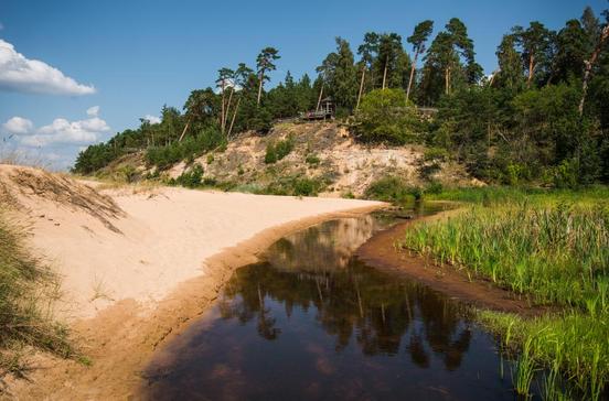 Ein Hochseilgarten in wunderbarer Lage am Steilufer der Gauja, über die man gleich viermal am Seil hängend saust. Guter Schwierigkeitsgrad auch für Kinder. Dazu ein Spa-Center und ein Strand.