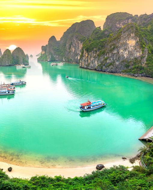 Vietnam ist ein Land auf dem Sprung in die Zukunft. Moos und Patina bedecken jahrtausendealte Kulturdenkmäler, doch auf den Straßen in den Städten von Saigon bis Hanoi tobt das moderne Leben: ein Land zwischen Vergangenheit und Aufbruch. Artenreiche Nationalparks und Naturschätze begeistern die Reisenden, ob in der spektakulären Ha-Long-Bucht im Norden oder in der amphibischen Welt des Mekongdeltas im tiefen Süden. Dazwischen warten 3200 km Küste mit Inseln, Badestränden und Hideaways auf Erkundung. In den Städten bestimmen an manchen Ecken noch Kolonialbauten und verwitterte Villen in weichen Ockertönen das Bild, schattige Alleen unter Tamarinden und farbenprächtige chinesische Tempel. Doch die Skyline wächst mit jedem Wimpernschlag. Und: Mopeds, überall Mopeds, ganze Schwärme ohne Ende.