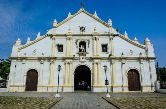 Eine der ältesten Kirchen des Landes (17.Jh.), erbaut im Erdbebenbarock: Die extrem dicken Mauern sollen das Gotteshaus bei Erdstößen sichern. Überraschend sind die Steinlöwen an der Fassade. Die Wächterfiguren wurden von chinesischen Handwerkern, die am Bau der Kirche mitwirkten, hier platziert, um böse Geister zu vertreiben.