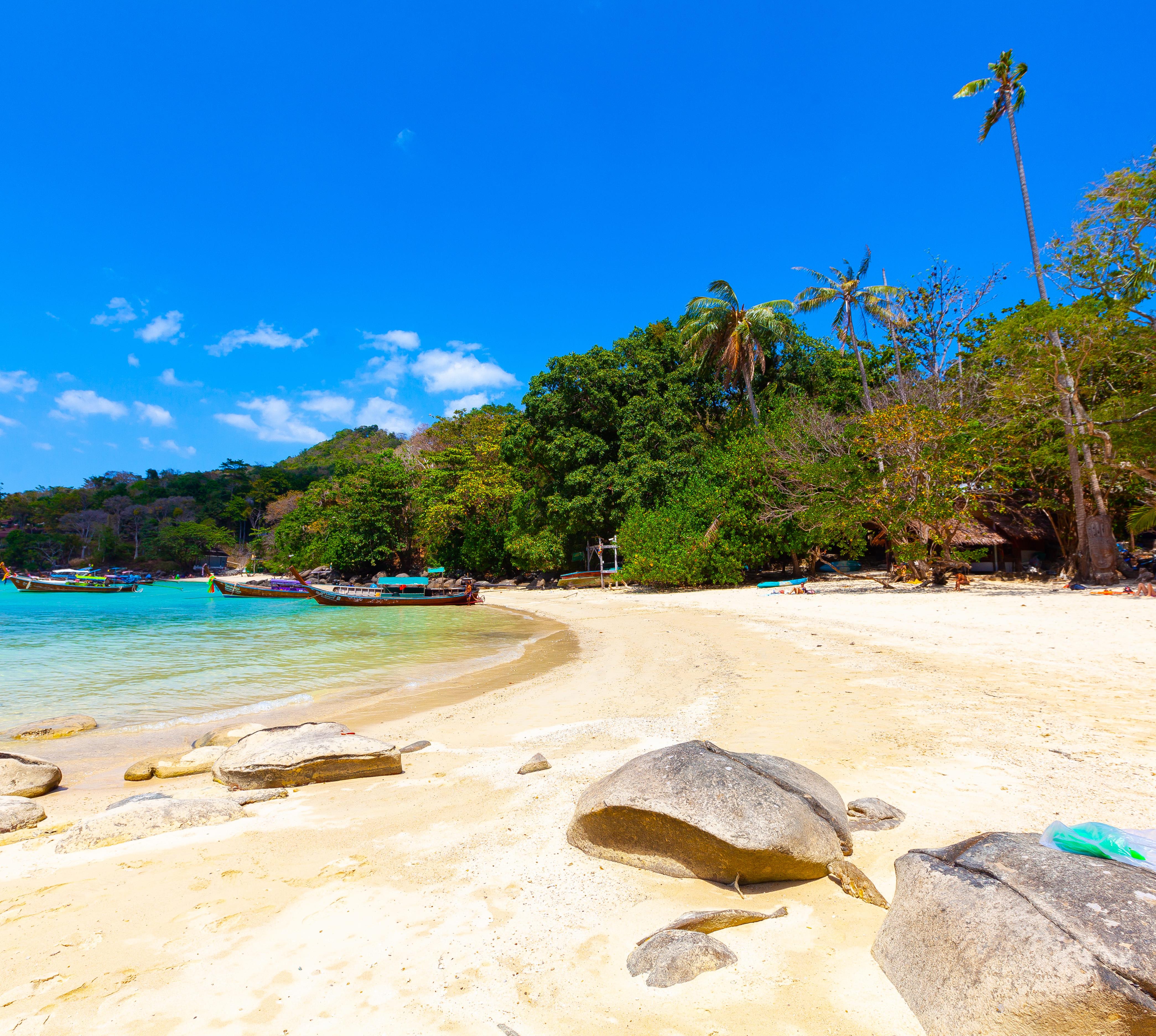 Am Nordkap der Insel teilen sich vier Resorts den 700 m langen Strand. Die schlichten Hütten gehören den Chao Leh, dem sogenannten Meeresvolk, das schon hier wohnte, bevor die Touristen kamen. Das kleine Dorf liegt heute mitten zwischen den Resorts.