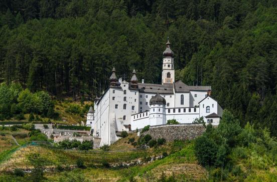Die Grafen aus dem schweizerischen Tarasp stifteten um 1200 die wehrhafte Klosteranlage, die kulturelles und geistliches Zentrum des Obervinschgaus wurde (3,5 km von Mals). Hier ist keine Besichtigung möglich, dafür zeigt das neue Museum eindrückliche Videos und erzählt von der Klostergeschichte.
