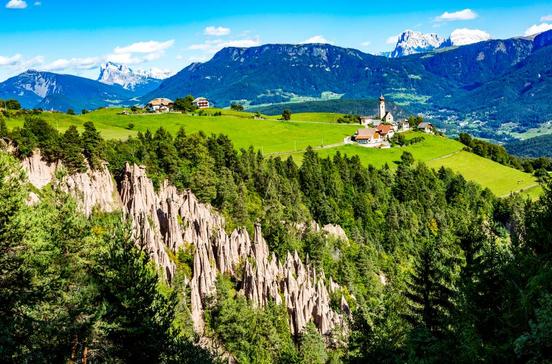 Die eindrucksvollen, bis zu 20 m hohen Pyramiden wurden von der Witterung aus dem Moränenschutt der Eiszeitgletscher geformt. Ein ebener Weg mit Stegen und Brücken quert den Hang oberhalb der Pyramiden.