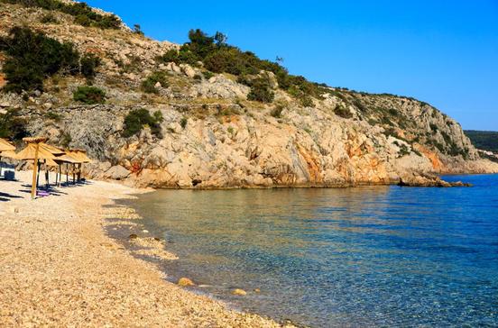 Der Kiesstrand Potovošce zählt zu den reizvollsten Stränden der Kvarner-Inseln. Das Wasser ist von einer atemberaubenden Klarheit.
