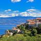 Die mittelalterlich geprägte Altstadt von Vrbnik mit engen Gassen und Stiegen thront malerisch auf einem Kalkfelsen an der Ostküste.