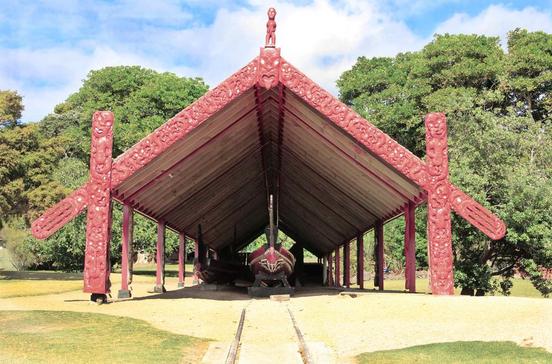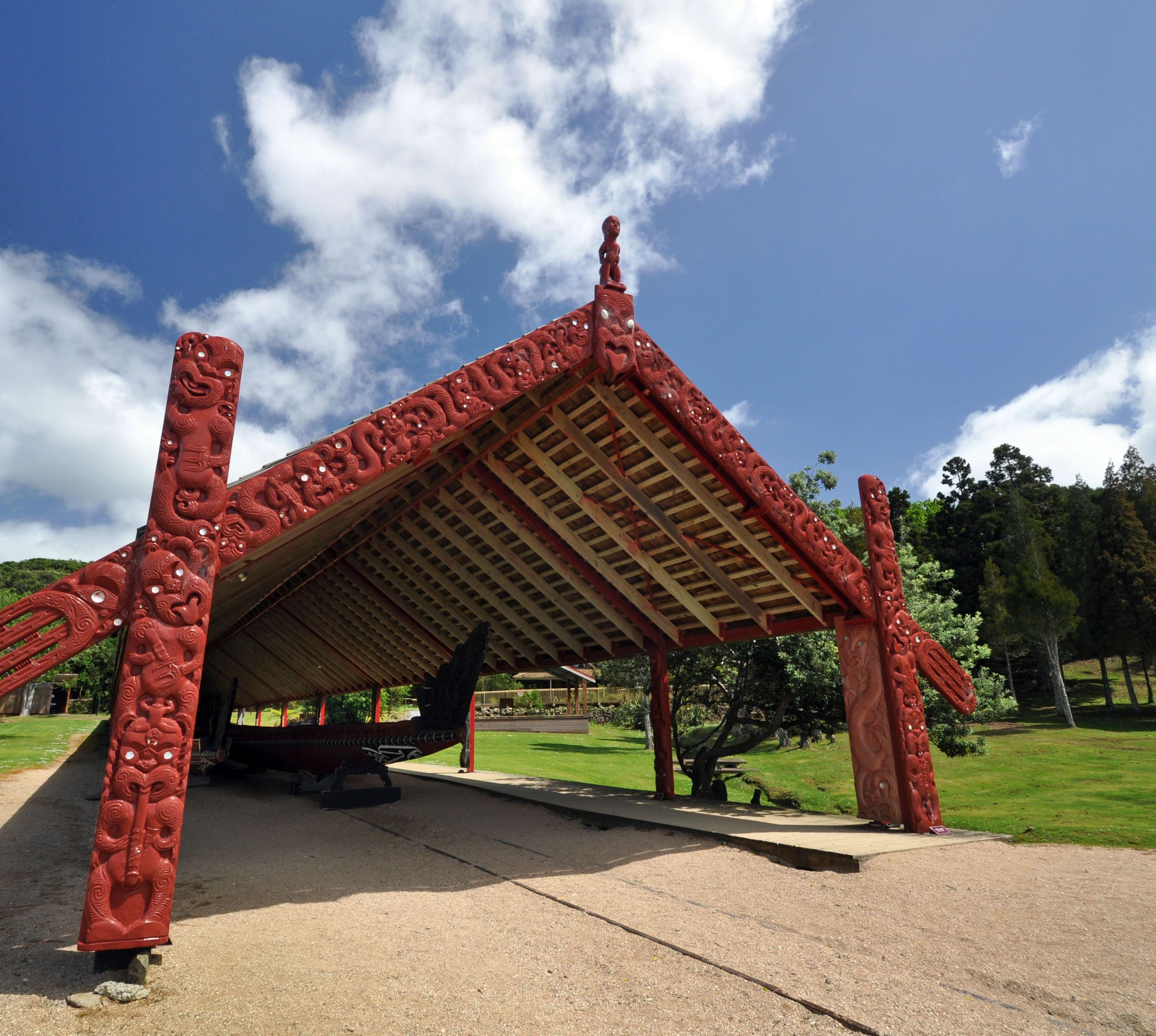 Dieses prunkvolle Versammlungshaus ist mit Schnitzereien und Symbolen mehrerer Maori-Stämme aus dem Northland ausgestattet. Das ist untypisch, denn eigentlich besitzt jeder Stamm seine eigene Versammlungsstätte, "Marae" genannt.