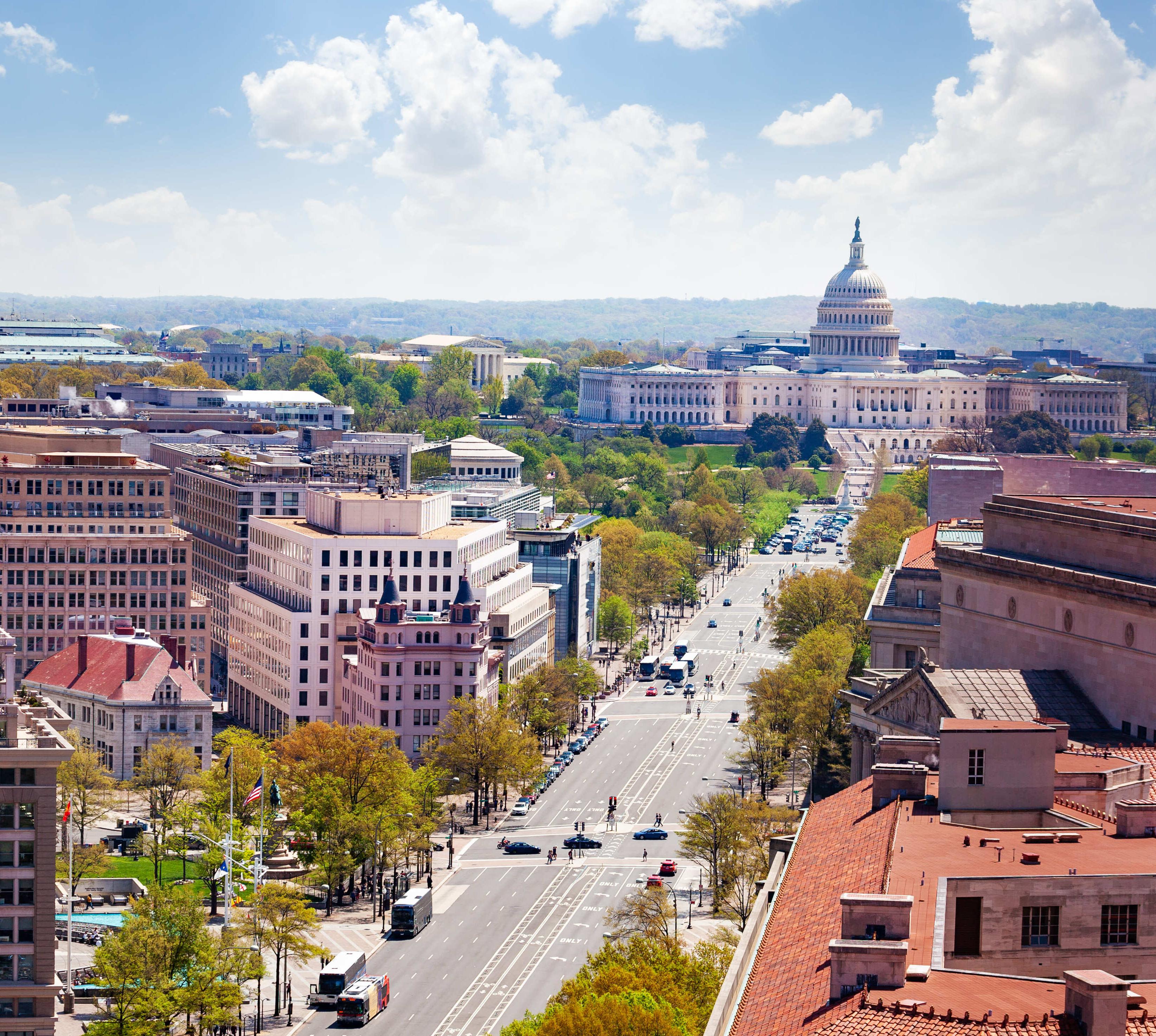 Besucher und Bewohner Washingtons können heute eine Stadt genießen, deren Bebauung viel Platz lässt für Flaneure. Eine breite Grünfläche – die sogenannte Mall – zieht sich durch das Regierungsviertel. Links und rechts von der Mall liegen viele Museen und Behörden. Das Kapitol, erbaut auf einem Hügel, thront über allem.Kein Haus in der Stadt soll das amerikanische Parlamentsgebäude überragen. So bleibt Washington eine Stadt mit viel Licht und Luft. Das Kapitol ist ihr Zentrum – im wahrsten Sinne des Wortes. Von dort aus teilt sich D.C. in vier Quadranten auf: Nordosten (NE), Südosten (SE), Südwesten (SW) und Nordwesten (NW). Die meisten Sehenswürdigkeiten, Attraktionen, Hotels und Restaurants befinden sich im wohl interessantesten Teil der Stadt, dem Nordwesten.