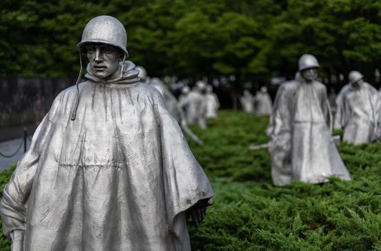 Der Koreakrieg (1950-1953) forderte fast so viele Opfer wie der Vietnamkrieg. Hauptbestandteil des Denkmals sind 19 lebensgroße Infanteristen, die sich durch ein Feld schleppen, offensichtlich vom Feind verfolgt.