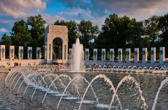 Eingeweiht 2004, erinnert das größte Kriegsdenkmal auf der Mall an die Opfer im Kampf gegen Nazi-Deutschland im Zweiten Weltkrieg. Die zentrale Lage zwischen Washington Monument und Lincoln Memorial unterstreicht die Bedeutung der Stätte, die von 56 Granitsäulen, mächtigen Bögen und Brunnen dominiert wird. Außerdem: eine Wand mit 4048 goldenen Sternen. Jeder Stern steht für 100 Amerikaner, die nicht überlebt haben oder noch immer vermisst werden. Besonders eindrucksvoll: Die Beleuchtung des Brunnens bei Nacht!