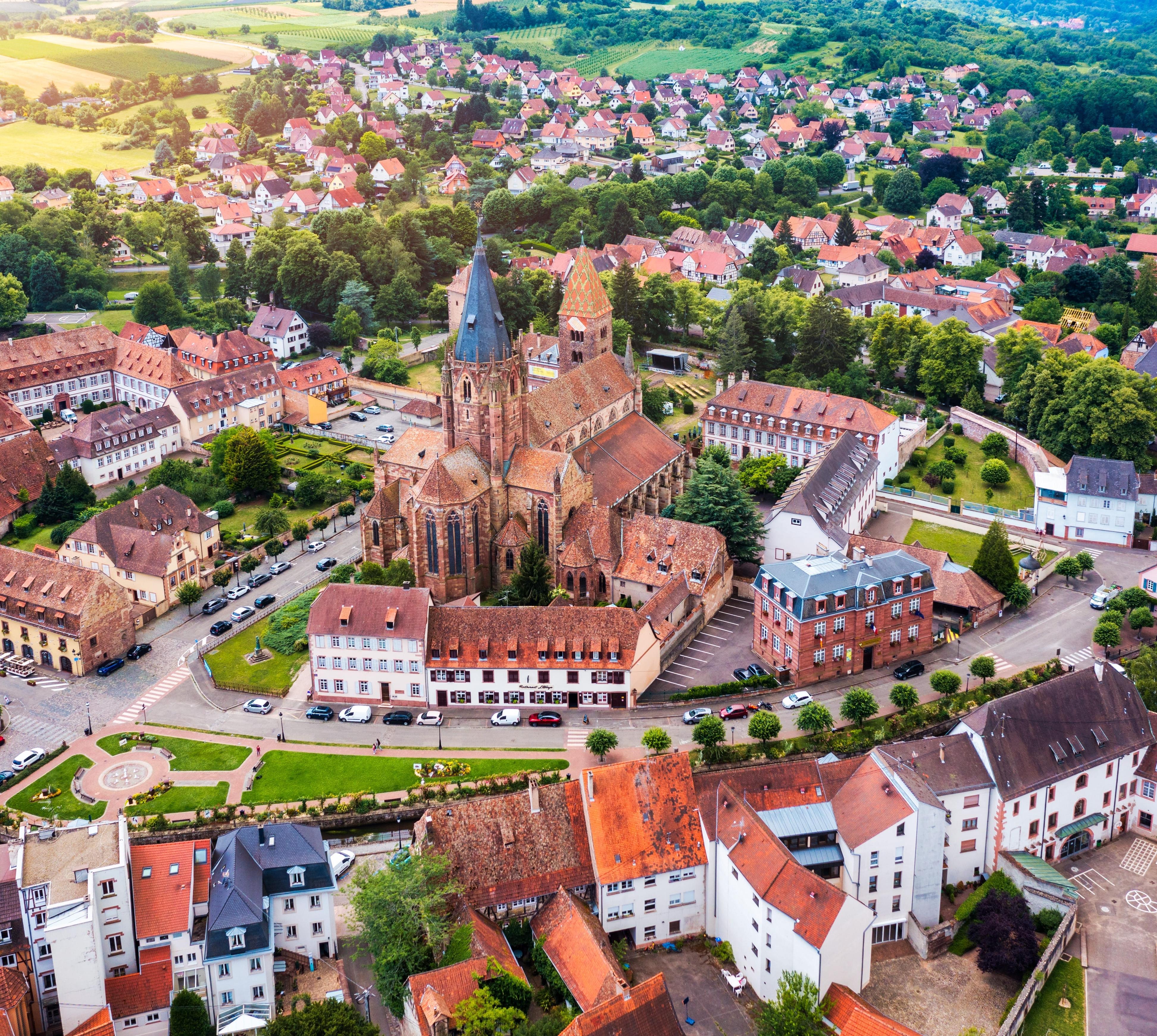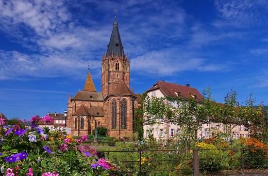 Mit ihren romanischen und gotischen Kirchtürmen und dem unvollendeten Kreuzgang ist sie eine der bemerkenswertesten Kirchen im Elsass. Im Innern gibt es monumentale Fresken, u. a. vom hl. Christophorus, zu bestaunen und eine Rosette, die nachmittags ein wunderbares Licht wirft.