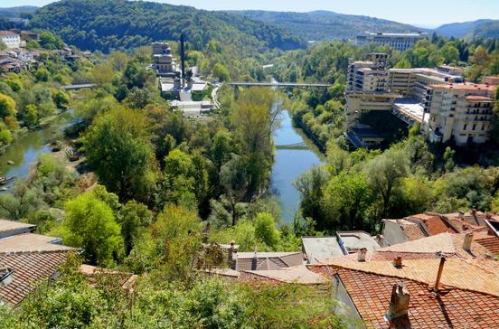Zum Süden hin der Balkan, zum Norden das Donautiefland, unten im Tal die Windungen des Flusses Jantra und mittendrin die Stadt Veliko Tarnovo. Die Stadt erinnert in ihrer Form an einen großen Vogel, der sich mit ausgebreiteten Schwingen auf den Felsterrassen niedergelassen hat - eine der schönsten Städte des Landes. Große Teile der malerischen Altstadt stehen unter Denkmalschutz. Eine 5000-jährige Geschichte der Besiedlung hat diese wunderschön gelegene Stadt hinter sich, zwei Jahrhunderte lang, vom Ende des 12.bis Ende des 14.Jhs., war sie die Hauptstadt des Zweiten Bulgarischen Reichs und eine kurze Zeit lang, nach der Ausgliederung aus dem Osmanischen Reich, auch die des neuen bulgarischen Staates. Veliko Tarnovo brachte viele bedeutende Schulen in der Literatur, Baukunst und Malerei hervor und war Heimat und Zentrum berühmter Vertreter der Nationalen Wiedergeburt. Die Überreste vom Zarenschloss und die Patriarchenkirche auf dem Hügel Tsarevets zeugen von der einstigen Rolle als Hauptstadt, die verwinkelten Gässchen im alten Teil südlich und nördlich der Straße Dimitar Blagoev von der Zeit der Nationalen Wiedergeburt und der antitürkischen Bewegung. Die Atmosphäre des 19.Jhs. ist zwar erhalten geblieben, aber ein großer Teil der Gebäude hat erheblich gelitten.