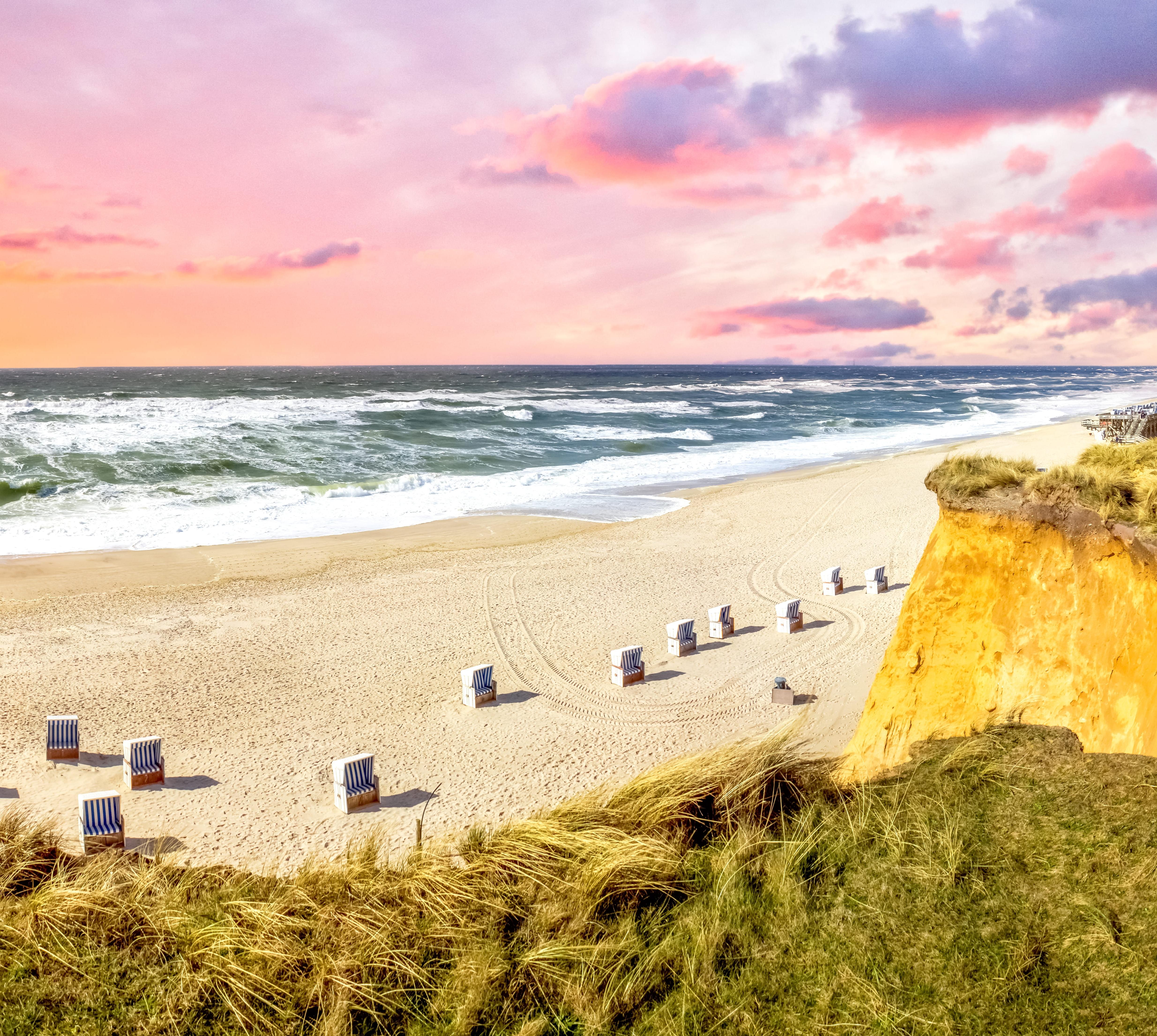 Eine noch grandiosere Lage – hoch oben auf dem Roten Kliff – als Wenningstedt bietet kein Ort auf Sylt: 30 m Steilkante und ein traumhafter Blick auf den Strand, der – scheinbar unendlich – im Norden und Süden im Meerdunst verschwindet.