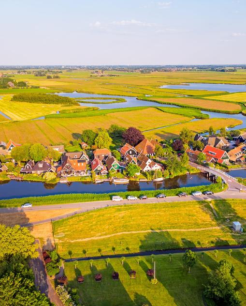 Die Niederlande bieten eine flache Landschaft mit Kanälen, Windmühlen und Tulpenfeldern. Besuchen Sie Amsterdam mit seinen Grachten und dem Rijksmuseum. Die Stadt Rotterdam beeindruckt mit moderner Architektur und dem Hafen. Der Keukenhof ist bekannt für seine Blumenpracht. Die Nordseeküste bietet breite Strände und Dünenlandschaften, ideal für Spaziergänge und Radtouren.