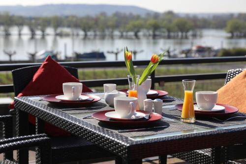 Morgens stärken Sie sich am Frühstücksbuffet. Im Restaurant genießen Sie regionale Gerichte. Snacks und Getränke erhalten Sie im Café Rheinblick mit Blick auf den Rhein.