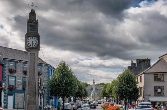 Die Kleinstadt (6200 Ew.), ein georgianisches Juwel, schmiegt sich um einen achtseitigen Platz und wird von dem kanalisierten kleinen Fluss Carrow Beg River geteilt. Die im 18.Jh. gegründete Stadt gelangte durch den Handel mit Garnen und Stoffen und durch ihren Hafen zu Reichtum. Im 19.Jh. verlor sie durch die Konkurrenz der englischen Textilindustrie an Bedeutung. Heute blüht der Ort durch den Tourismus wieder auf.