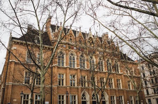Das Palais des Beaux Arts entstand 1908/09 nach Plänen der Gebrüder Drexler. In der Nachbarschaft stehen Häuser unterschiedl. Epochen, außerdem das sogenannte "Hundertwasserhaus".