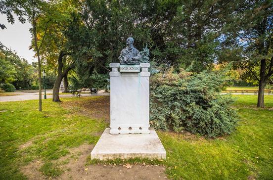 Denkmal für den berühmten Komponisten und Organisten (1824-96), geschaffen von V. Tilgner. Bruckner studierte in Wien. Domorganist in Linz. Ab 1868 Professor am Wiener Konservatorium.