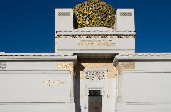 1897/98 schuf der österreichische Architekt Josef Maria Olbrich für die "Wiener Secession", einer Gruppe avantgardistischer Künstler, die sich soeben von ihrer konservativen, im Künstlerhaus organisierten Kollegenschaft losgesagt hatten, dieses Ausstellungs- und Klubgebäude. Der von einer - einst als "Krautschopf" bespöttelten - Kuppel aus filigranem vergoldeten Blattwerk bekrönte Bau gilt als ein Hauptwerk des Wiener Jugendstils. Im Untergeschoss kann Gustav Klimts Beethovenfries besichtigt werden.