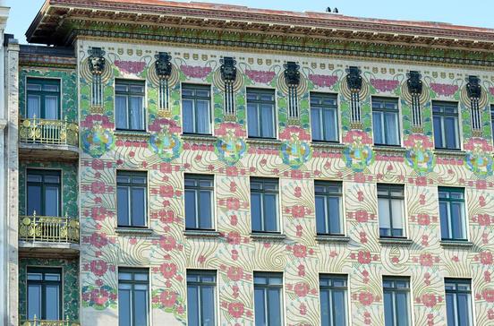 Ein Augenschmaus für alle Jugendstil-Liebhaber: das vom bedeutenden österreichischen Architekten Otto Wagner geschaffene Mietshaus mit seiner Fassade aus wetterfesten Keramikfliesen, auf denen sich farbenfrohe Pflanzenornamente ranken. Das mit filigranem Golddekor überzogene Eckhaus rechts daneben ist ebenfalls ein Entwurf von Wagner. Dessen Frauenmedaillons stammen von Kolo Moser, dem Mitbegründer der Secession und der Wiener Werkstätten.