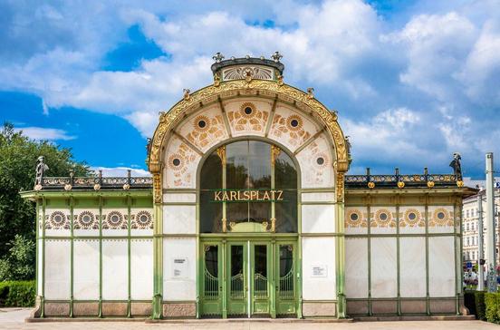 Das Stadtbahn-Pavillion wurde im Jahre 1901 von Otto Wagner erbaut. Das schöne Jugenstil-Gebäude aus Marmor mit Goldauflage dient heute als U-Bahn-Zugang und für kleinere Ausstellungen.