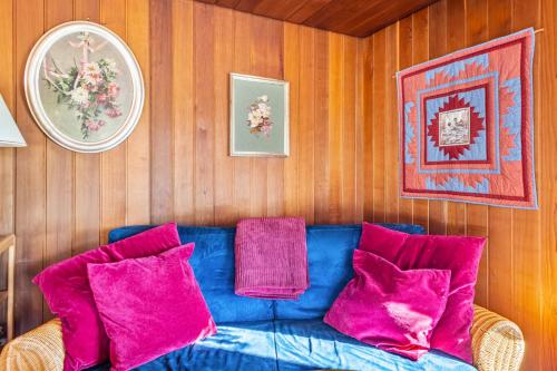 Diese Ferienwohnung mit einer Veranda / Patio und Bergblick bietet 1 Schlafzimmer, ein Wohnzimmer, einen TV, eine gut ausgestattete Küche mit einem Ofen und einer Mikrowelle sowie 1 Badezimmer mit einer Badewanne. In dieser Ferienwohnung werden Handtücher und Bettwäsche angeboten.