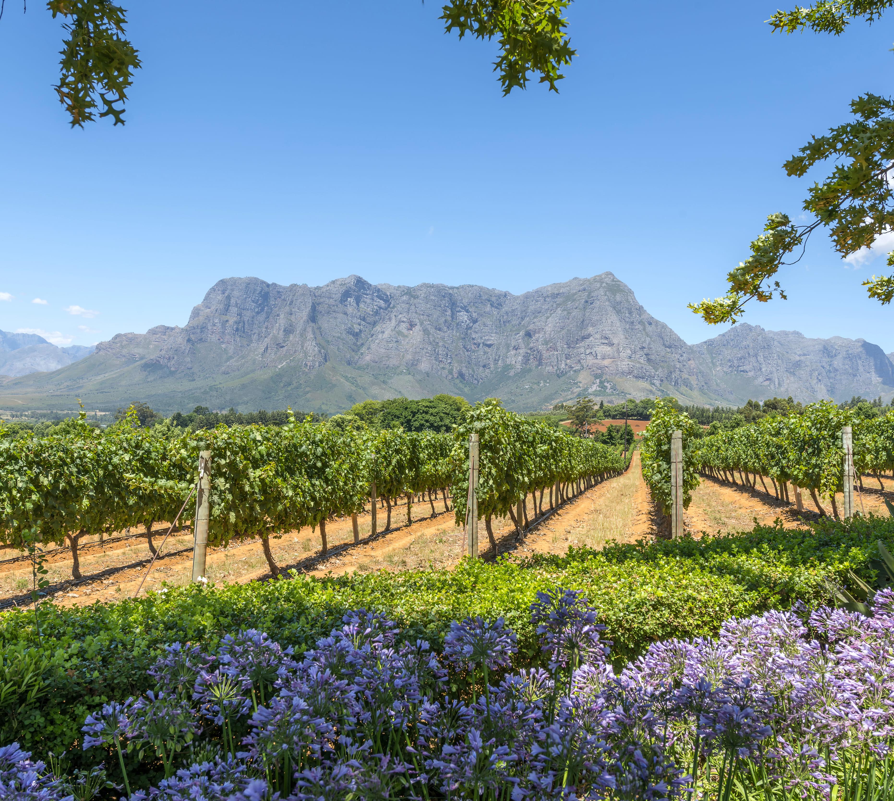 Bei klarer Sicht sind die Bergketten der Wine Lands schon von Kapstadt aus zu sehen: Sie zeichnen sich im Osten als Silhouetten ab. Und hat man die Fahrt dorthin zurückgelegt, ist ihr Anblick kaum weniger überwältigend. Die Berge, über die sich die Rebenfelder der Weinfarmen ziehen, machen den Wine Lands Kaliforniens oder Australiens ernsthaft Konkurrenz.