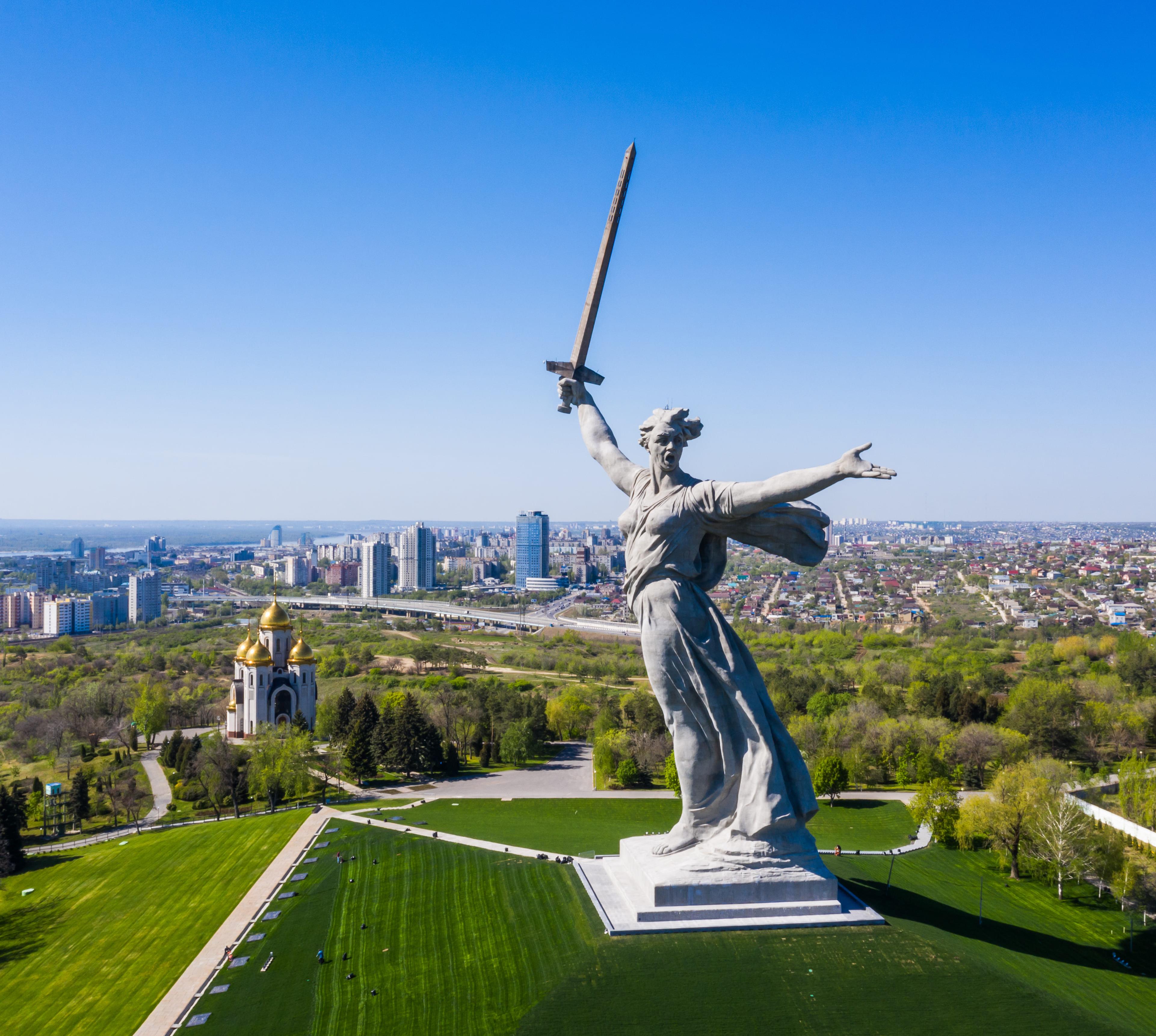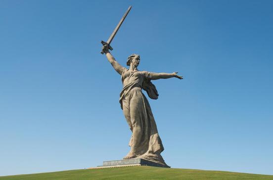 Die Monumentalstatue auf dem Mamajew-Hügel wurde zum Gedenken an den Sieg der sowjetischen Streitkräfte im "Großen Vaterländischen Krieg" errichtet. Realisiert wurde sie durch den bekannten Architekten Nikolai Nikitin. Beachtlich sind die Dimensionen des Kolossalstatue: die Beton-Stahl-Konstruktion ist 85 Meter hoch. Ihr Gewicht beträgt - ohne Sockel - stattliche 7900 Tonnen.