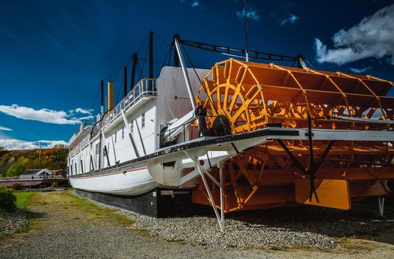 TouristenattraktionenNostalgie pur: ein restaurierter, auf dem Trockenen liegender Schaufelraddampfer aus der Blütezeit der Yukon- Schifffahrt, der die „gute alte Zeit“ lebendig werden lässt.