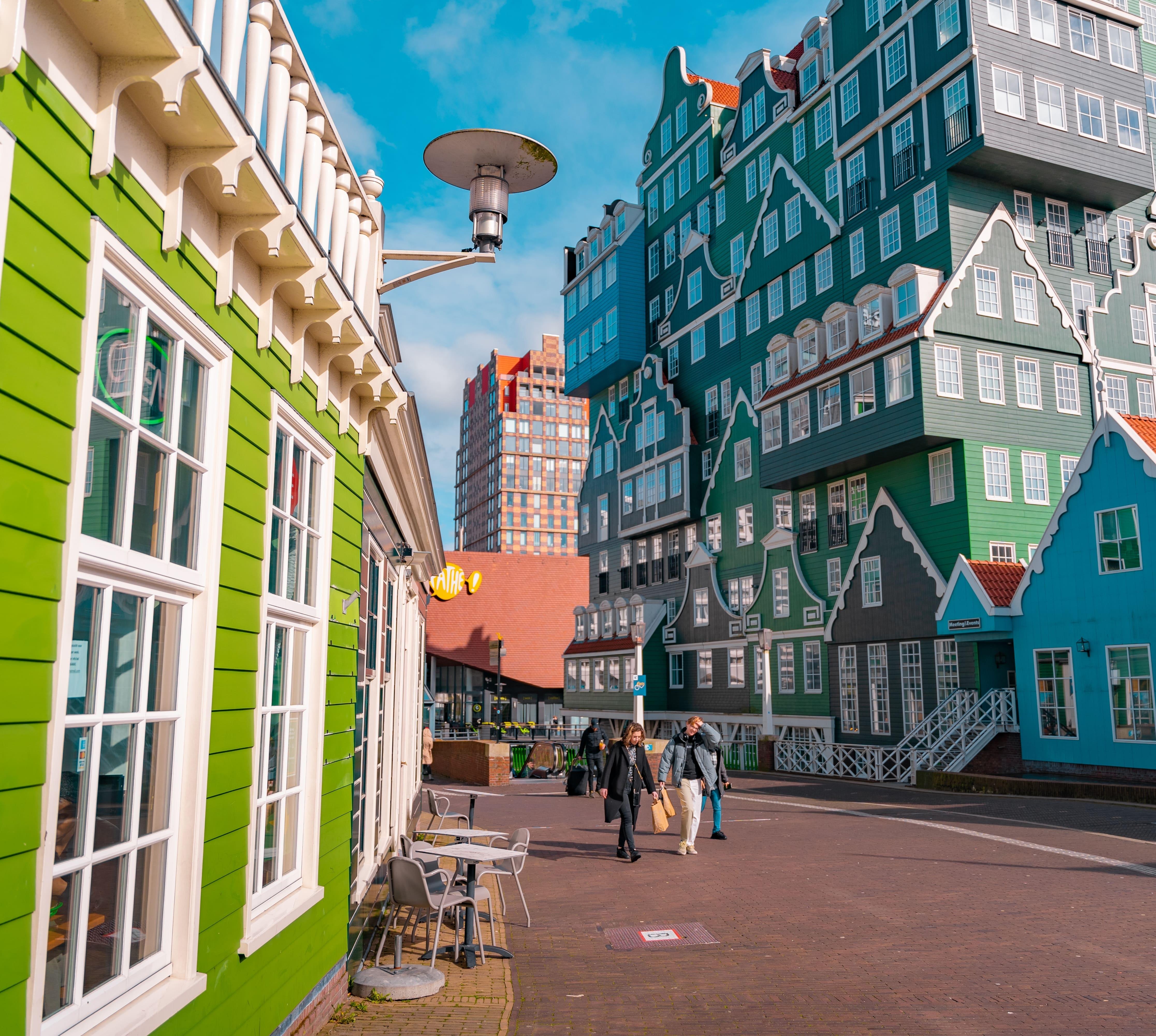 Zaanse Schans ist ein Freilichtmuseum mit gepflegten grünen Holzhäusern und weißen Fensterläden, alten Lädchen und wuchtigen Mühlen, von denen man drei besichtigen kann.