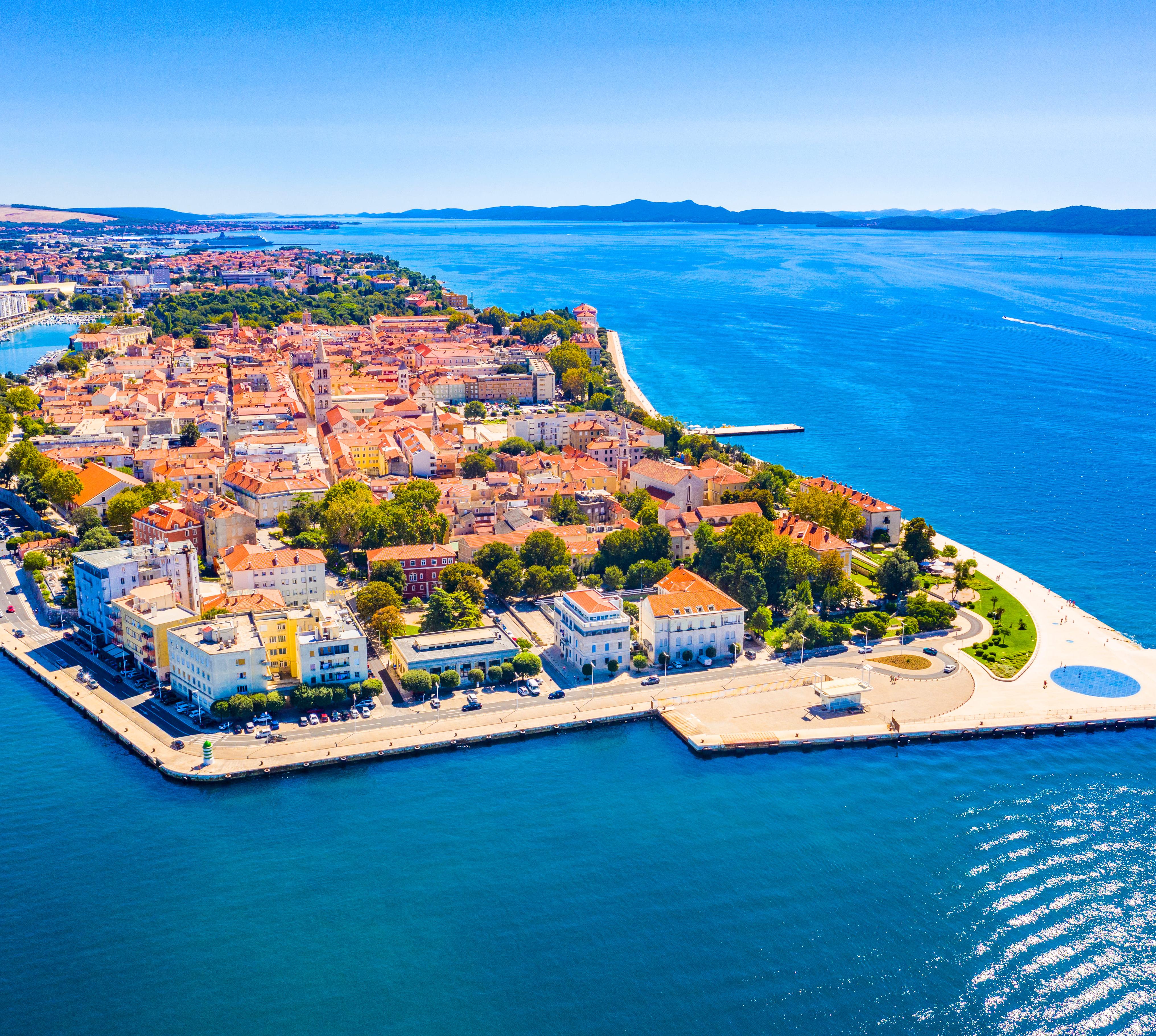 Dalmatiens zweitgrößte Hafenstadt besitzt sensationelle Baudenkmäler sowie archäologische Exponate von Weltrang. Zugleich ist sie eine lebhafte und gar nicht museal anmutende Stadt. Zadars Altstadt liegt auf einer 500 m breiten Halbinsel, die nur über einen schmalen Zugang mit dem Festland verbunden ist. Von drei Seiten von Meer umgeben, wurde die Stadt ab 1409 unter venezianischer Herrschaft mit Mauern und Toren zur Seefestung ausgebaut. Bis 1918 war Zadar Hauptstadt Dalmatiens, und bis 1947 wurde ihr Lebensgefühl von einer großen italienischen Gemeinde geprägt, die die Stadt nach dem Anschluss an Jugoslawien verließ. Das italienische Flair ist im Stadtzentrum mit seinen vielen Cafés heute noch spürbar. In Zadars Altstadt sind drei Jahrtausende Architektur und Kunst erhalten, aber auch die jüngere Geschichte hat Zeugnisse hinterlassen - und dies nicht nur mit der faszinierenden Kunstinstallation von Meeresorgel und Gruß an die Sonne, wo sich die Zadarer gerne treffen, um den Sonnenuntergang zu erleben. In den Altstadtgassen fallen zwischen Barock und Gotik zahlreiche Häuser des razionalismo, der italienischen Architektur des Faschismus, ins Auge. Sie wurden in den 1920er- und 30er-Jahren erbaut, als Zadar italienische Enklave war. Ein Großteil der Altstadt wurde bei englischen und amerikanischen Bombardements 1943/ 44 zerstört.