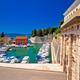 TouristenattraktionenDer Zeleni trg gehört zum Römischen Forum. Die hier sichtbaren Reste des Forums, darunter eine 14 m hohe Säule mit Flechtornamenten, die vom Mittelalter bis 1840 als Schandpfahl diente, sind erst 1946 beim Abtragen zerbombter Wohnhäuser entdeckt worden.