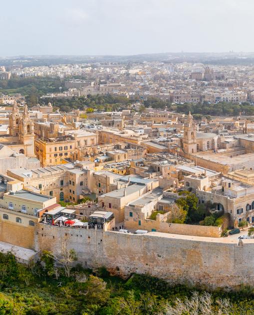 Malta ohne Küstenorte – auch das ist mal schön! Nur zwei Hotels, das größte mit gerade einmal 17 Zimmern. Die mittelalterliche Stadt Mdina, wie ein Menschennest auf einem Felsplateau über Weinbergen erbaut. Darin Pferdekutschen statt Autos, alte Palazzi statt Supermärkte und auf den Mauern aussichtsreiche Cafés. Die urige Landstadt Rabat auf zwei Niveaus: einem über- und einem unterirdischen, einen für heute, das andere für die Ewigkeit.