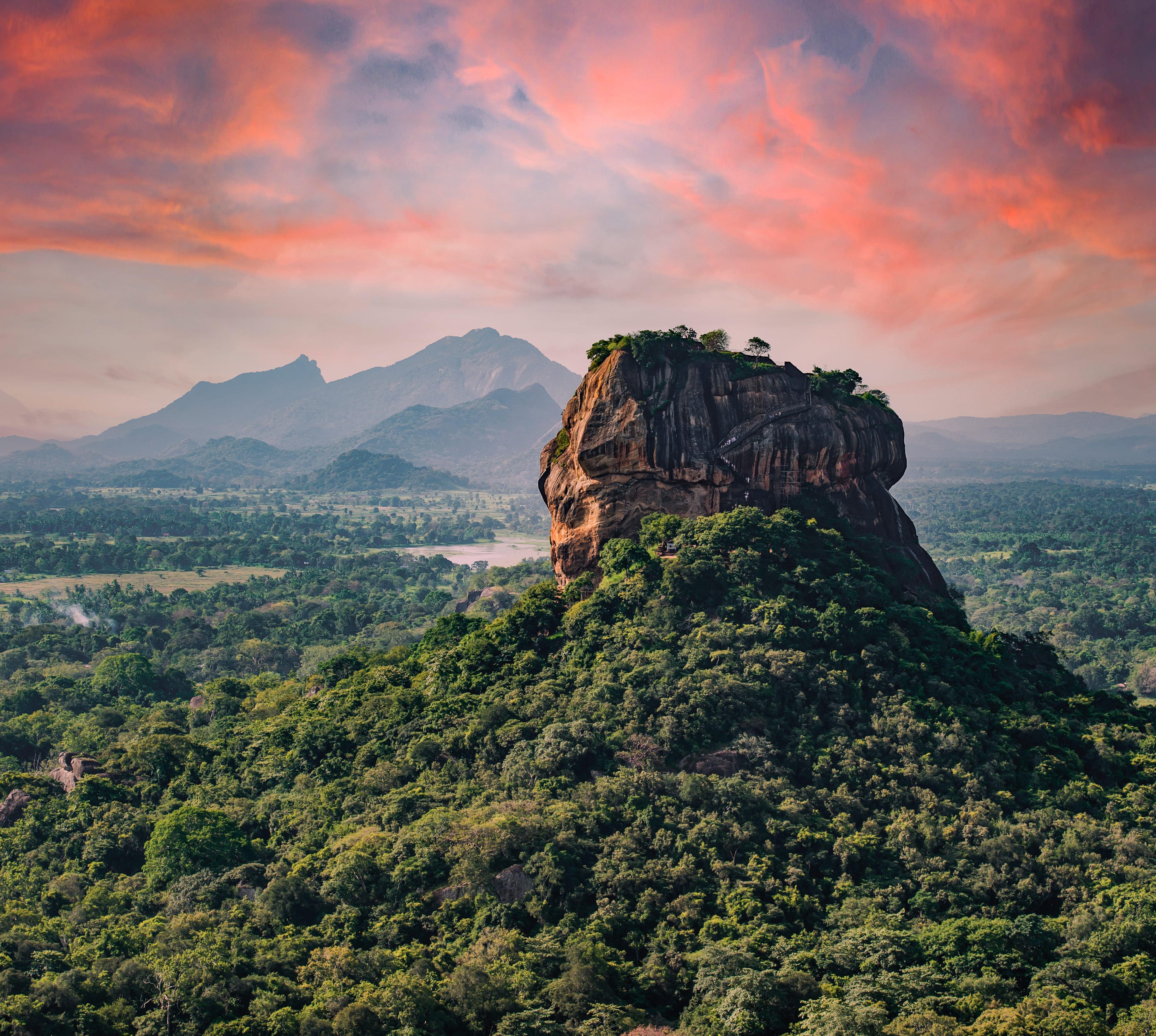 Ein rotbrauner Felsen, einem Tafelberg ähnlich, ragt weithin sichtbar aus der Ebene. Sein Name steht für ein weltberühmtes Symbol ceylonesischer Hochkultur: die Wolkenmädchen von Sigiriya aus dem 5.Jh. n. Chr., farbige Fresken, deren anmutige Schönheit den steilen Weg auf die halbe Höhe des Bergs ganz gewiss lohnt.
