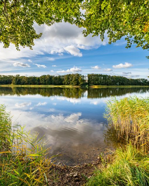 Obwohl, von wegen Binnenland: Das nächste Gewässer ist auch hier nie mehr als 3000 Schritte entfernt. Und im warmen Boddenwasser schwimmt es sich ebenso gut wie in der Ostsee. So bunt wie die Natur sind auch die Menschen, die hier leben. Künstler, traditionsbewusste Handwerker und viele Lebenskünstler haben ihr Zuhause Tür an Tür mit Bauern, Fischern und Arbeitern. Rügen ist kein Freilichtmuseum, hier wird gelebt. Genau deshalb stößt du beinahe überall auf kleine und große Geheimnisse, wenn du dir die Zeit nimmst, hinzuschauen. Radele durch eine der urigen Alleen, setz dich mitten auf den riesigen Feldern auf eine Bank, schau zum Himmel, wo seltene Fischadler und Kraniche ihre Runden drehen. Und hör mal: ganz viel Ruhe ...