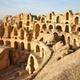 Heute als Weltkulturerbe geschützt, steht dieses Amphitheater noch und ist so monumental, dass Al-Ǧamm im Vergleich dazu wie eine Spielzeugstadt aussieht: Mit 148 m Länge, 120 m Breite und einer Höhe von 40 m überragt das drittgrößte Amphitheater des Römischen Reichs die umliegenden Häuser. Im 2.Jh. gebaut, wurde es nie in Betrieb genommen. Die gruseligen Verliese im Untergeschoss haben also weder wilde Tiere, Gladiatoren noch verfolgte Christen beherbergt.