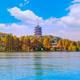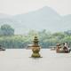Aus einer Bucht in der Mündung des Qiantang-Flusses machte eine Nehrung vor etwa 12 000 Jahren einen kleinen Süßwassersee, der im achten Jahrhundert enorm vergrößert wurde. Seither wurde er immer wieder ausgebaut und verschönert – nun ist er der berühmteste ganz Chinas. Weidengesäumte Ufer, Promenaden, Teehäuser, Pagoden, Inseln, Lotos, sanfte Hügel – das nur rund 1,5 m tiefe, ca. 10 km2 große Gewässer bietet zahllose Szenerien und viele Arten, sie zu genießen. Die schönste ist eine Rundfahrt auf den handgeruderten Gondeln für bis zu sechs Personen; Alternativen sind Ruder- und Motorboote. Unternimm deinen Törn möglichst am späteren Nachmittag, dann ist es auf dem Wasser und den Inseln weniger voll. Zu Lande bietet sich eine Tour mit den offenen Elektrobussen an, die den See umrunden (nur im Uhrzeigersinn). Xiao Yingzhou, „Kleines Yingzhou“, ist nach einer Insel im Weltmeer benannt, auf der die Unsterblichen leben sollen – also eine Art Paradieseiland. Es besteht vor allem aus großen Lotos- und Seerosenteichen. Auf der Südseite schauen drei Steinlaternen aus dem Wasser, genannt Santan Yinyue: „Drei Weiher spiegeln den Mond“. Es ist eine der zehn berühmten Westseeansichten, aber mit erleuchteten Laternen bei Mondschein nur am Mittherbstfest zu erleben. Fähre inkl. Inseleintritt 55 Yuan Bai-Damm: Der kürzere der zwei Dammwege führt von der Stadtpromenade zur Insel Gushan. Sein Name wird mit dem Dichter Bai Juyi in Verbindung gebracht, der ihn im 9.Jh. besang. Richtung Nordwest blickt man zu der 45 m hohen Baochu-Pagode auf. Insel Gu Shan: Die einzige natürliche Insel im Westsee ist in großen Teilen als Park gestaltet. Am Südufer stehen Teehäuser und Restaurants, dazwischen liegt das Provinzmuseum. Berühmt ist der Blick von der Terrasse am Ostende: „Herbstmond über stillem See“. Westwärts, bevor die Uferstraße nach rechts abknickt, liegt das schöne Anwesen der Xiling-Siegelschnitzergesellschaft von 1904.Jenseits der Bauten, die die Uferstraße säumen, nimmt der baumreiche Sun-Yat-sen-Park den Großteil der Inselfläche ein. Nahe der Brücke, die im Nordwesten zurück aufs Festland führt, passiert die Straße noch die Grabstätte der Revolutionärin und Frauenrechtlerin Qiu Jin (1875–1907). Su-Damm: Der längere der zwei Dämme wurde benannt nach Su Dongpo, jenem Dichterbeamten, der ihn ab 1089 aufschütten ließ. Der 2,8 km lange Weg führt über sechs Brücken. Kurz vorm südlichen Ende liegt rechts der schöne Huagang-Park mit vielen Ausblicken übers Wasser und einem Teehaus. Von den Geschichten und Sagen, die sich um den Westsee ranken, ist die der Weißen Schlange die bekannteste. Es ist eine Liebesgeschichte, an deren Ende die eingesperrte Schlange – in Gestalt einer wunderhübschen Dame – aus ihrem Gefängnis unter der Lei-Feng-Pagode befreit wird, als diese einstürzt – was 1924 tatsächlich geschah. Jetzt steht der Turm wieder, etwas pompös geraten, auf einem Hügel am Südufer.