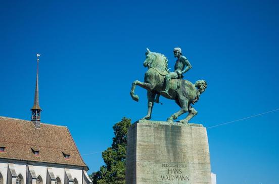 Am Brückenkopf der Münsterbrücke thront das Waldmann-Denkmal, das zusammen mit der Silhouette des Grossmünsters ein Wahrzeichen Zürichs ist. Im 15.Jh. schuf sich Hans Waldmann als Kriegsherr einen Namen, wurde Zürcher Bürgermeister und machte sich durch sein despotisches Regime unbeliebt. Schließlich erzwang das Volk seine Enthauptung.