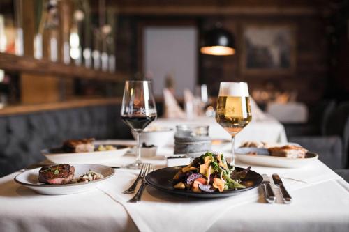 Bayerische Spezialitäten und internationale Gerichte werden Ihnen im Restaurant des Alpenhofs Grainau mit seiner traditionellen Holzverkleidung serviert. Von der hübschen Gartenterrasse aus genießen Sie den großartigen Bergblick.
